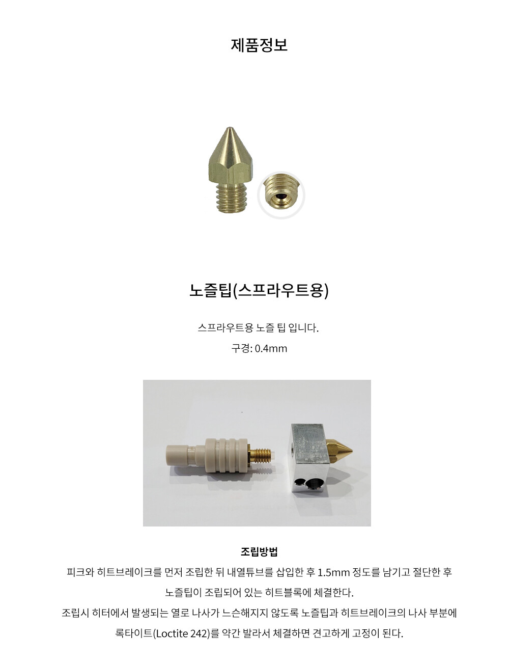 스프라우트용 노즐 팁 입니다. (0.4mm)