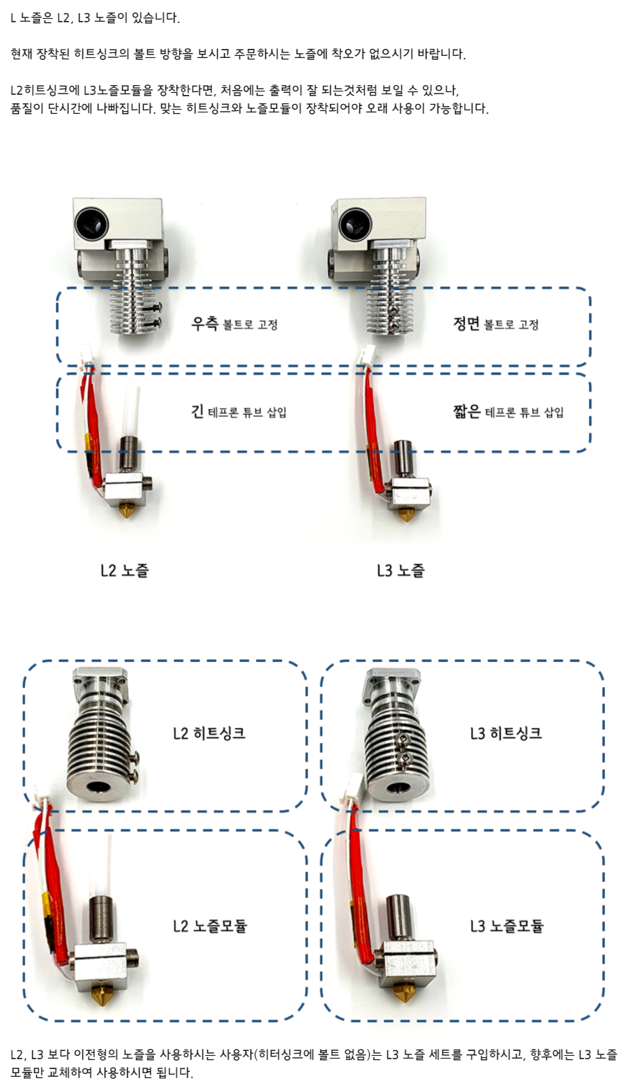 히트싱크의 볼트 방향은 생각하지 말고 테프론 튜브 길이를 확인하시기 바랍니다.
